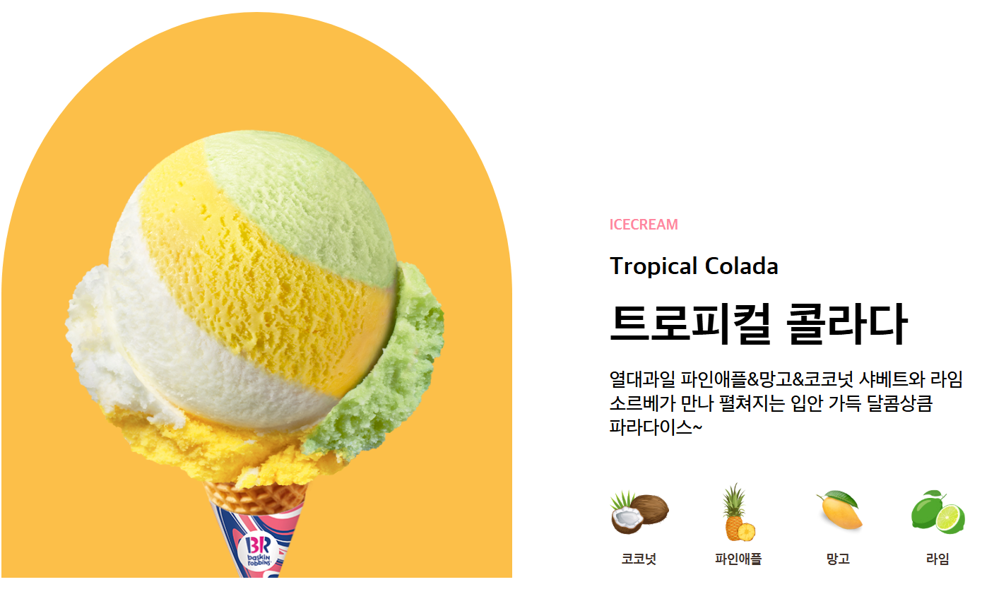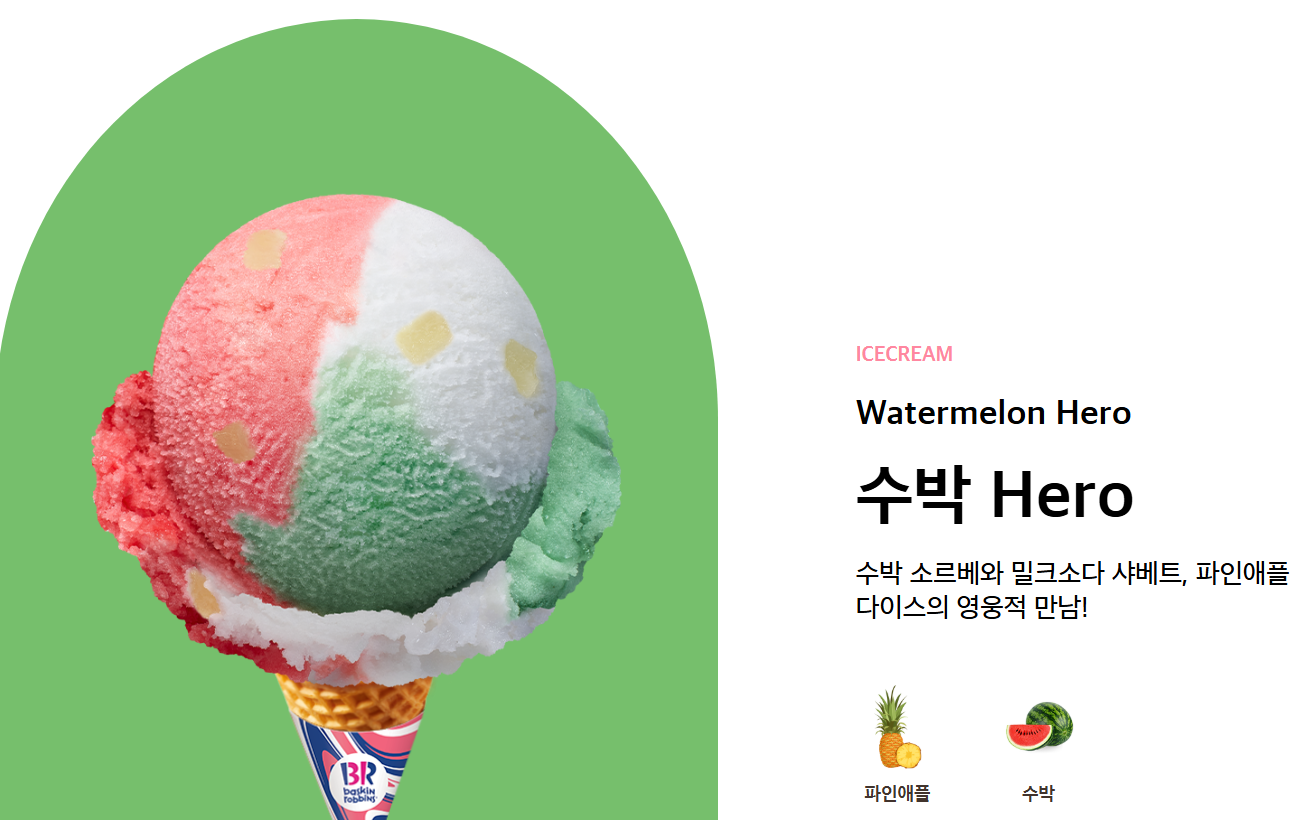 무더운 여름, 한 스쿱만으로도 시원함과 상큼함을 동시에 느낄 수 있는 아이스크림입니다.