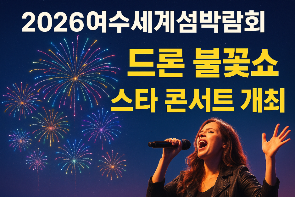 이번 기념행사의 백미는 단연 드론 불꽃 라이트쇼입니다. 섬박람회의 메시지를 담은 형형색색의 드론과 불꽃이 여수 밤하늘을 수놓으며, 축제 분위기를 극대화할 예정입니다. 이어지는 스타들의 무대는 가을밤 여수를 더욱 특별하게 만들어줄 것입니다.
